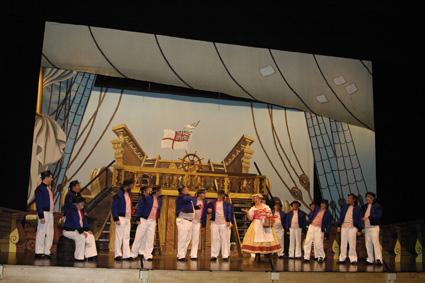 The cast of 49 featured Iain Whittaker as Sir Joseph Porter KCB, Jeff Trim as Captain Corcoran, Simon Hutson as Ralph Rackstraw, Keith Lawrence as Dick Deadeye, Andrew Philips as Bill Bobstay, Daniel Powell as Bob Becket, Suzannah Brooksbank as Josephine, Jenny Gumbrell as Hebe and Maggie Preston as Mrs Cripps (Little Buttercup). The producer and choreographer was Jill Morgan and musical director John Lawes, alongside the Reading Operatic Society’s residential production team – David Parsonson production manager, Carol Hodgkinson stage manager and Kim Hollamby lighting designer.