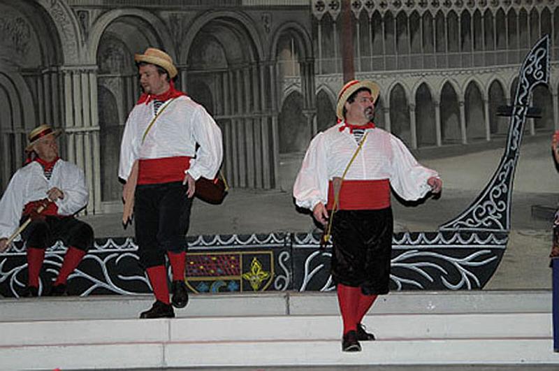 Produced and choreographed by Jill Morgan, and the orchestra conducted by John Lawes, the entire company excelled in the second act with quartets and quintets of tantalising singing, and praiseworthy duos, not forgetting well-balanced choruses.Particularly delightful was the singing of Jeff Trim (Marco), who sang melodiously and moved impressively, Maggie Marsh (Gianetta) and Lori Janke (Tessa) who delighted with their luscious tones, and Andrew Philips (Giuseppe), a fine baritone. Iain Whittaker (Duke of Plaza Toro) and Sam Murray (Duchess) formed a super partnership and presented the many patter songs with flair and aplomb while Tania Platt revealed a lovely soprano voice as Casilda, their daughter. As the Grand Inquisitor, Keith Lawrence gave an imperious, supercilious performance of a rich-toned baritone voice.