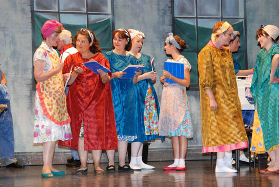 In the Reading Operatic Society production a cast of 41 included principals Kevin Gingell as Myron Old Man Hasler, Emma Powell as Gladys Hotchkiss, Howard Timberlake as Sid Sorokin, Maggie Preston as Mabel, Tony Slevin as Vernon Hines, Adam Butler as Prez, Adrain Tang as Joe, Tania Pratt as Catherine ‘Babe’ Williams and Samantha Fields as Mae. The producer and choreographer was Jill Morgan and musical director John Lawes, alongside the Reading Operatic Society’s residential production team – David Parsonson production manager, Carol Hodgkinson stage manager and Kim Hollamby lighting designer.